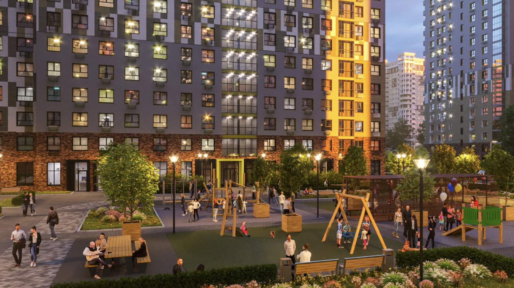 «Ильинойс» сочетает авторские архитектурные решения, современную инженерию, продуманную инфраструктуру и живописное природное окружение. В жилом комплексе запланировано благоустройство территории, закрытые дворы по концепции «без машин», с детскими и спортивными площадками.