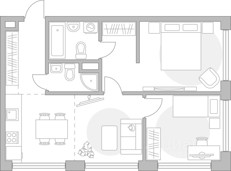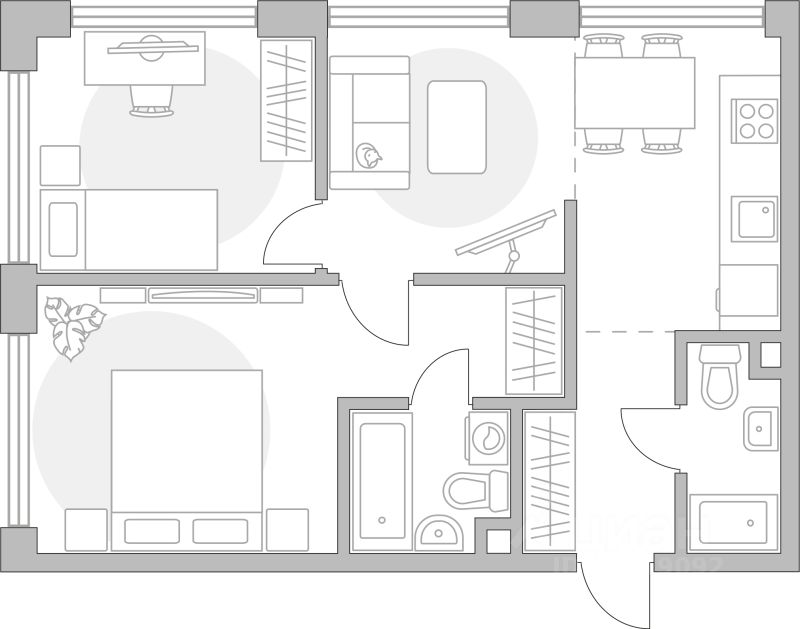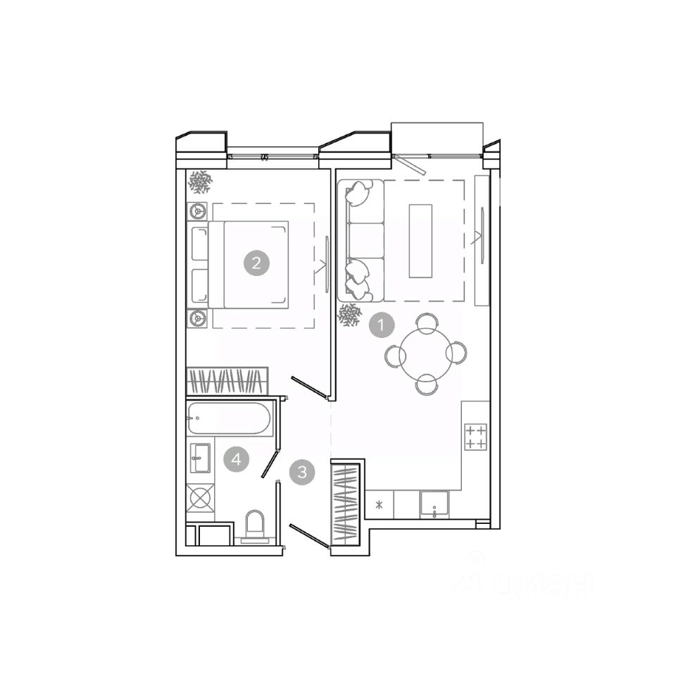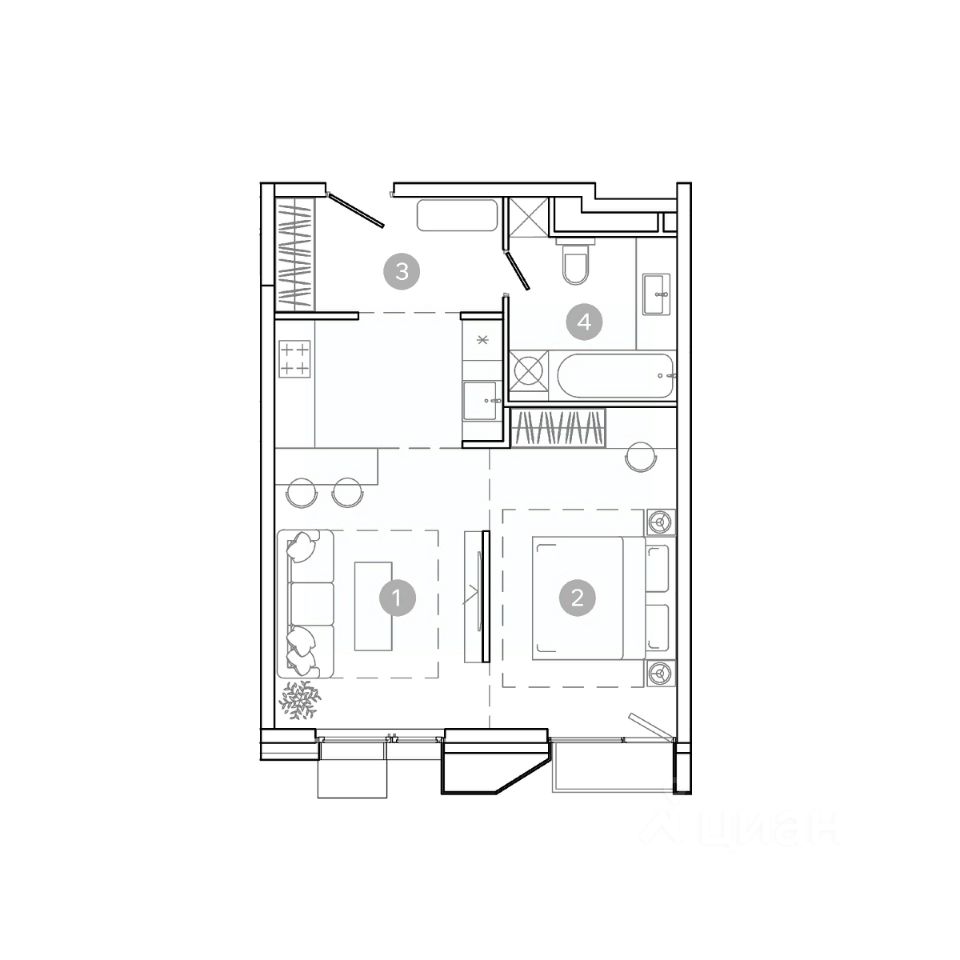 Продаётся 2-комнатная квартира в строящемся доме (Корпус 1), срок сдачи: IV-кв. 2028, общей площадью 55.49 кв.м., на 2 этаже.