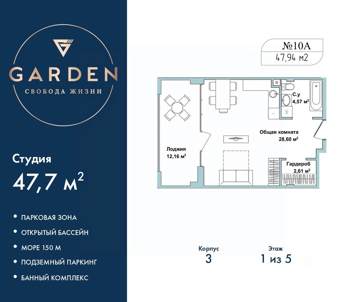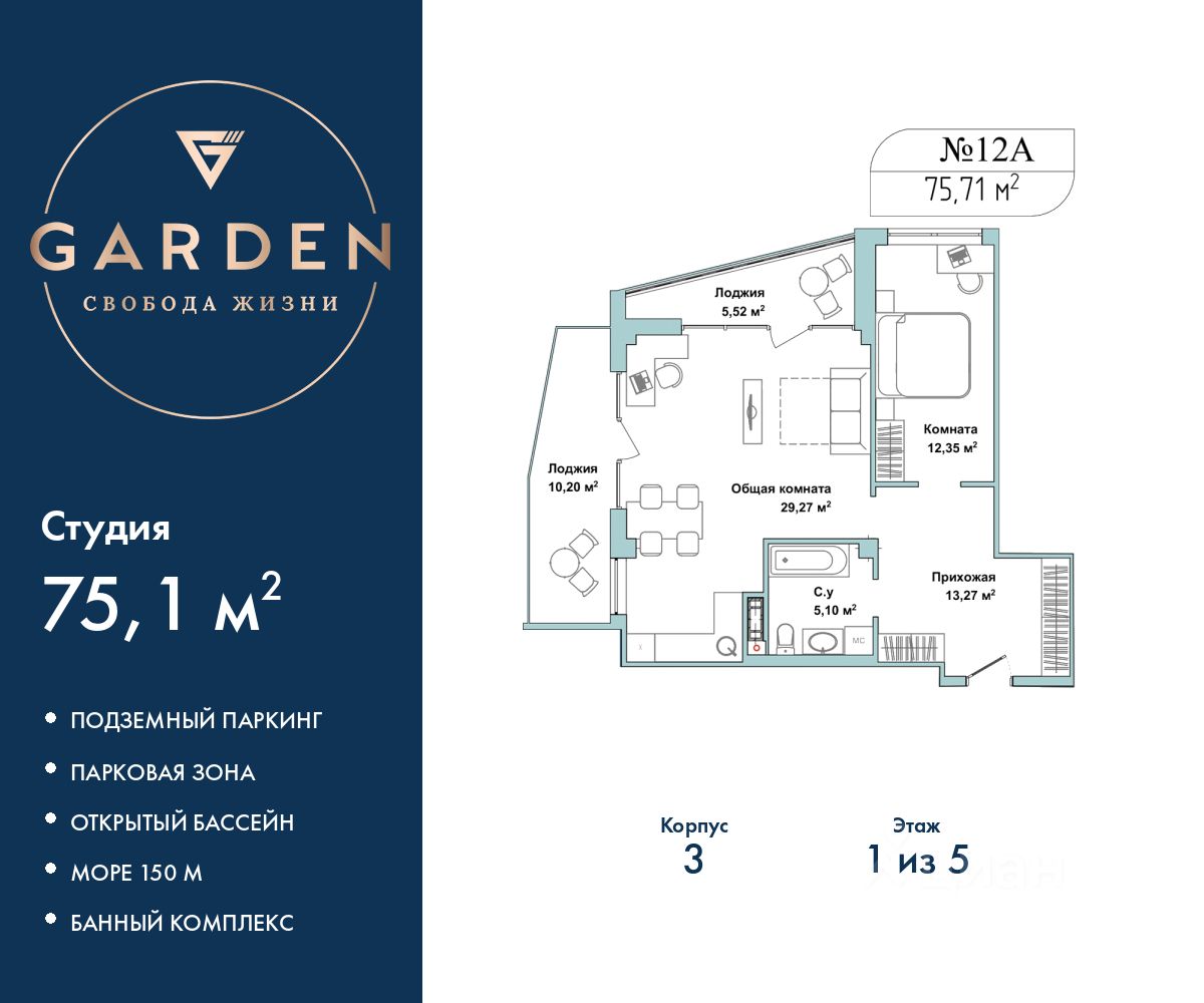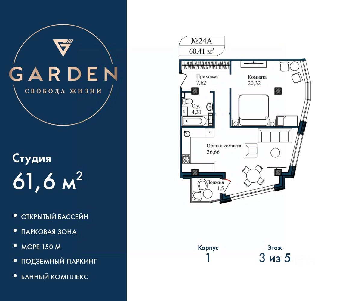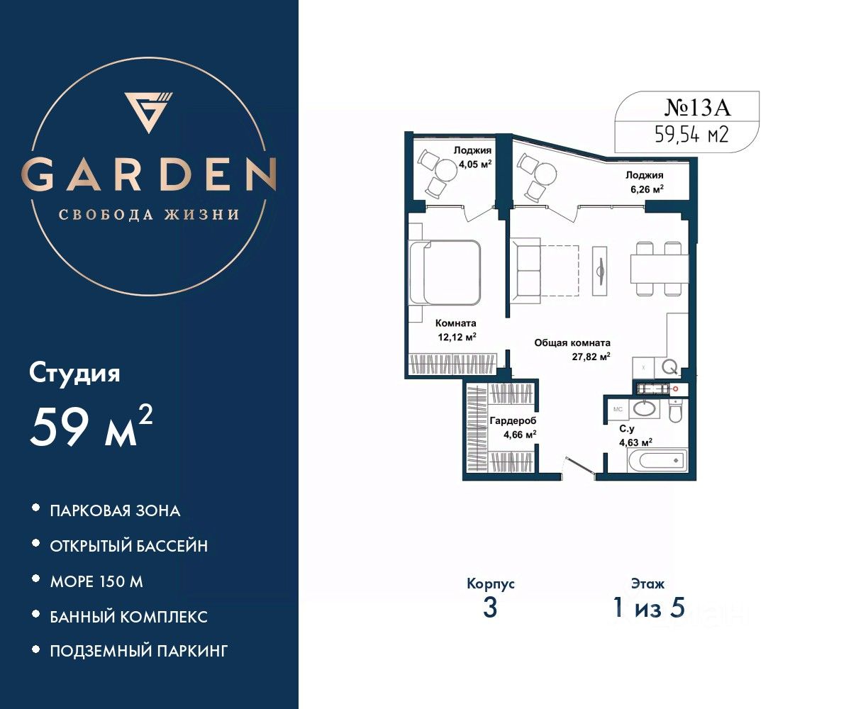 Продаётся 2-комнатная квартира в строящемся доме (Дом 2), срок сдачи: II-кв. 2027, общей площадью 60.52 кв.м., на 3 этаже. ЖК "НебоПарк"-это свобода, мечта и тепло места. Места, в котором хочется...