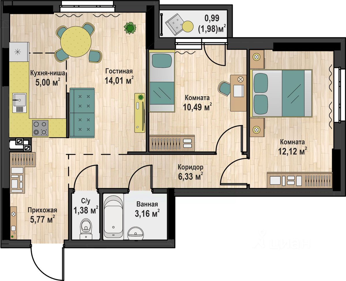 Кол.во комнат | 2 |
