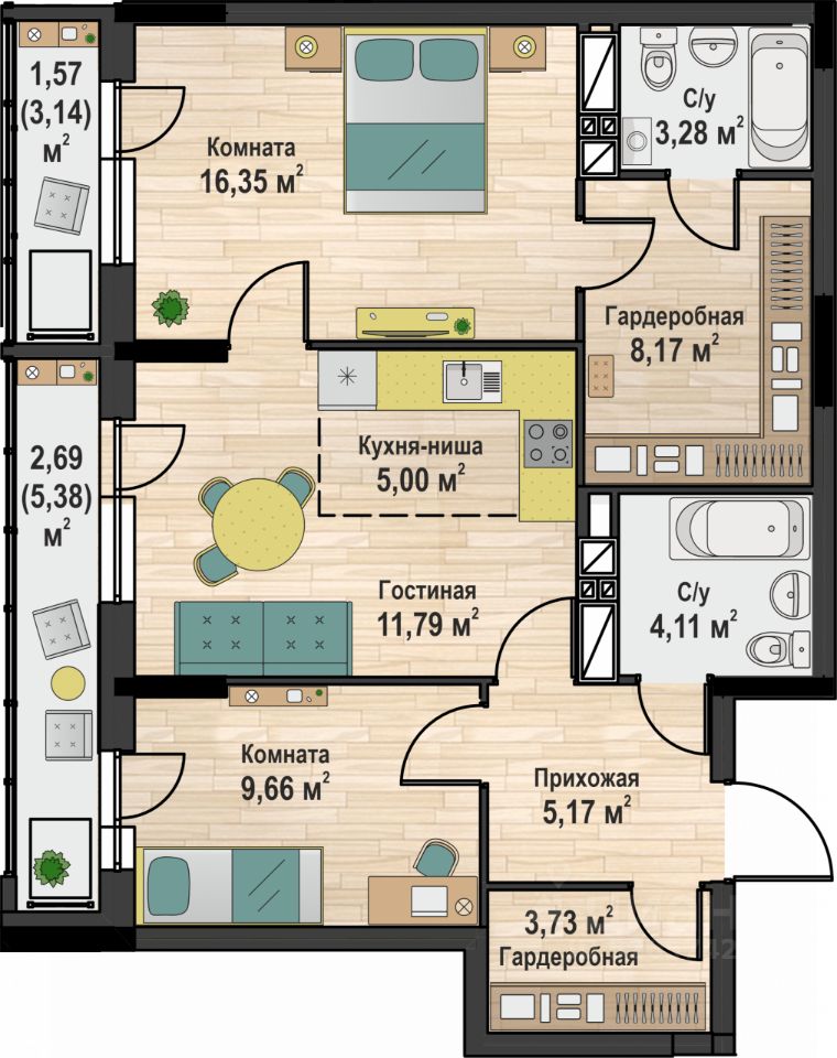 Площадь общая | 58.69 |