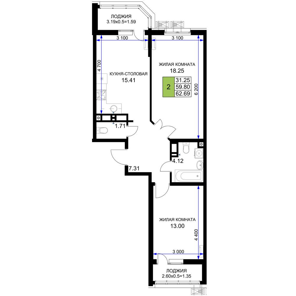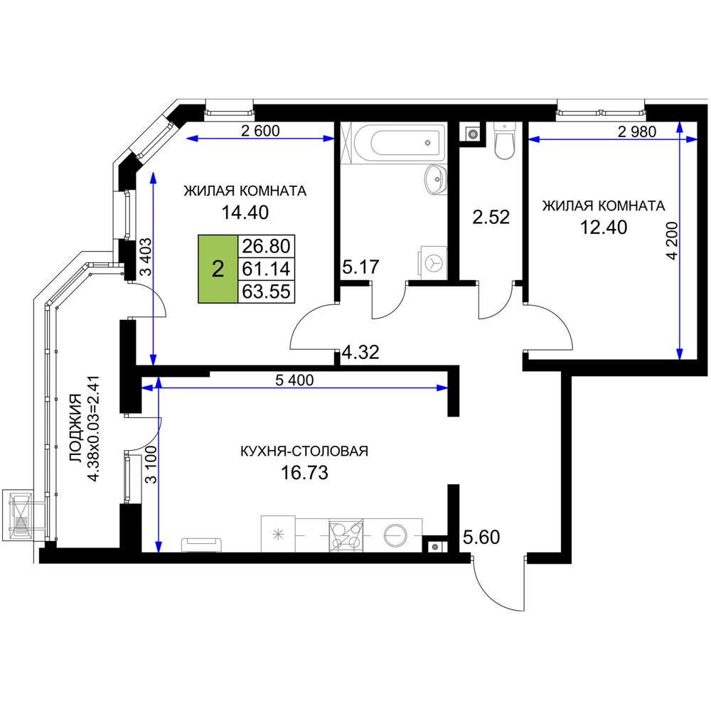 | Категория | 2-комн. |