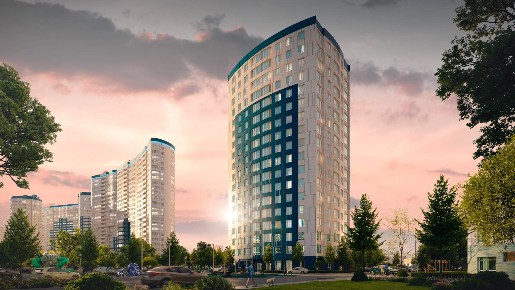 ЖК «Фонтаны» расположен в микрорайоне Черёмушки. Отличная транспортная развязка позволяет быстро и с комфортом добраться до центра, а большое количество зеленых насаждений и парков дает возможность гулять с детьми и наслаждаться прекрасным видом на Кубань.