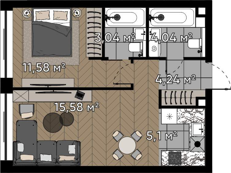 | Категория | 2-комн. |