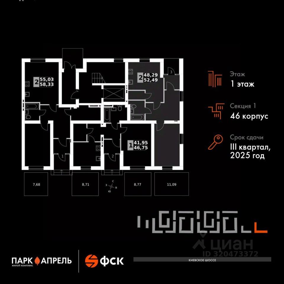 Продаётся 2-к квартира номер 17 в сданном корпусе общей площадью 55.82 кв.м на 1-м этаже 4 этажного дома.