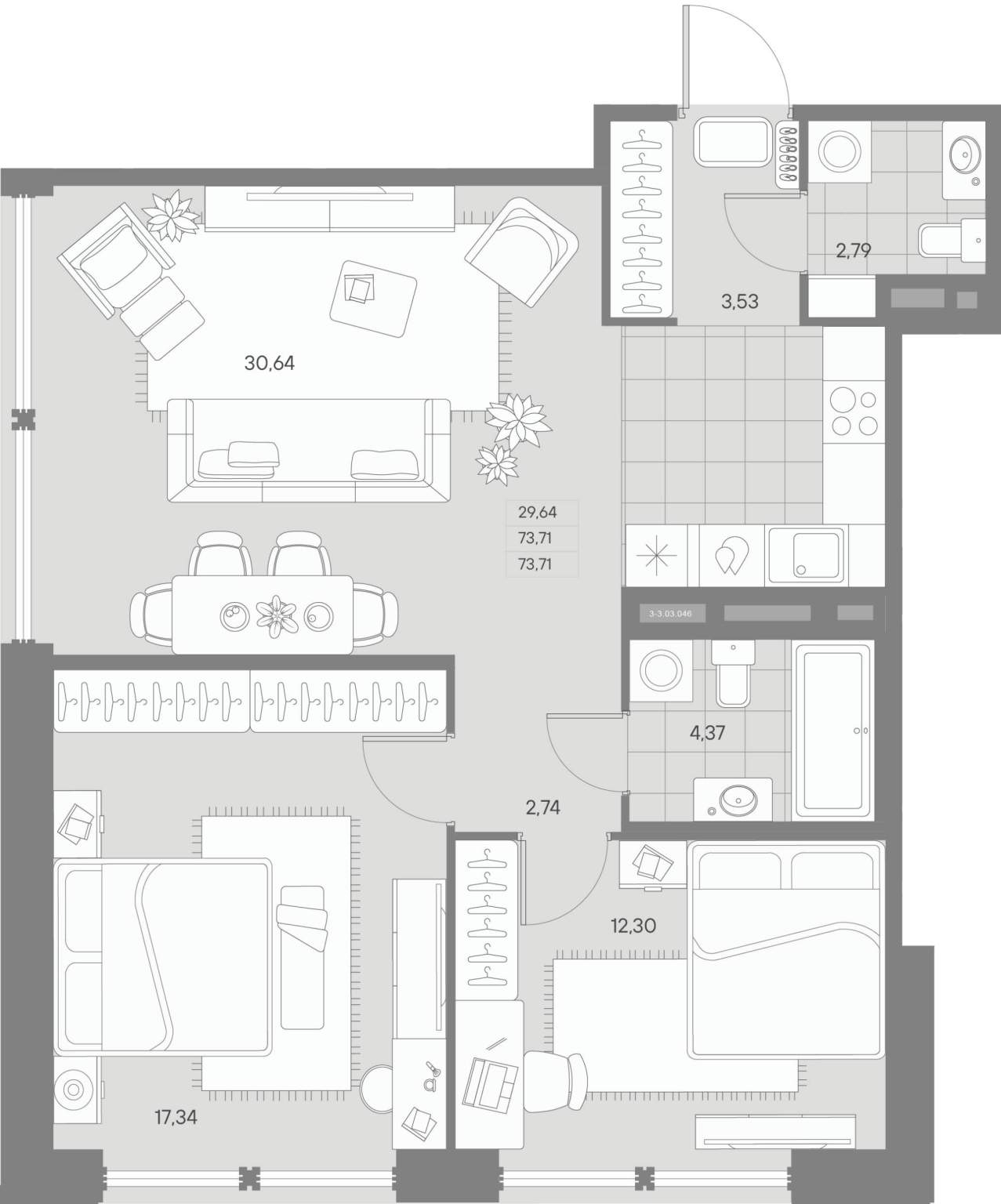 | Категория | 2-комн. |