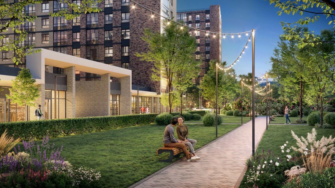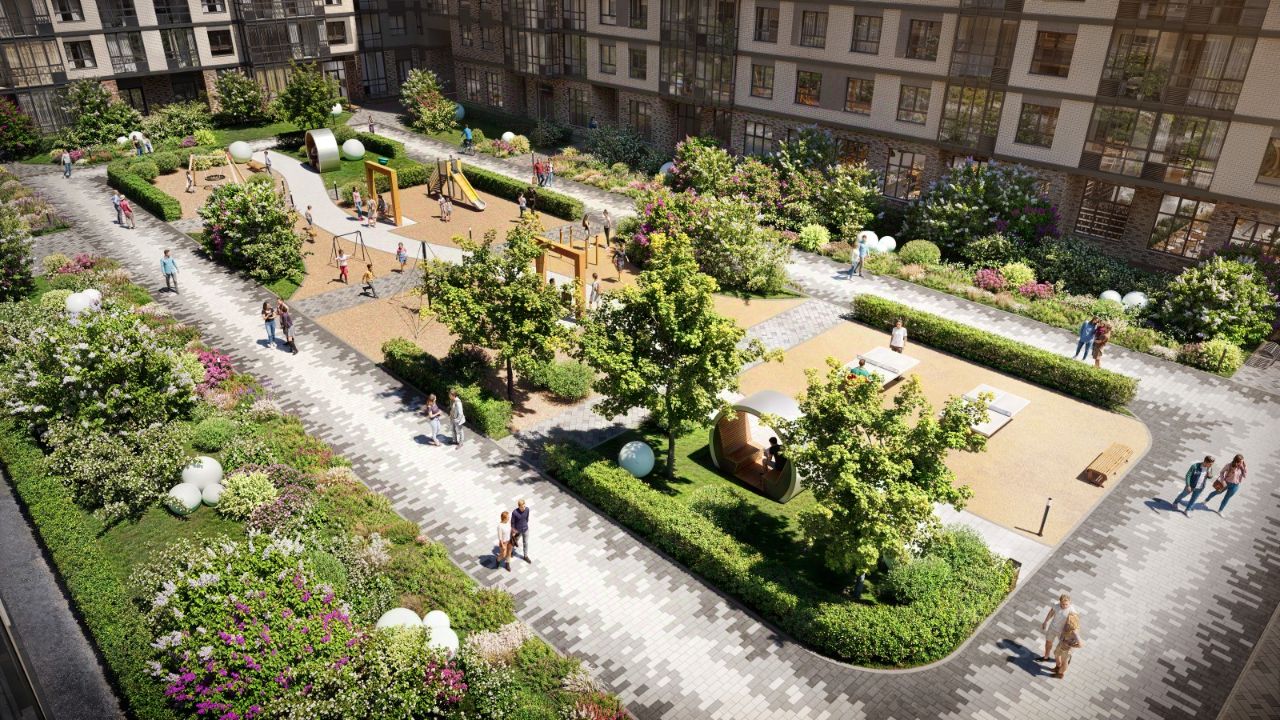 Школа, детский сад и спортивный комплекс строятся непосредственно рядом с домом. Также предусмотрен закрытый двор жилого комплекса, свободный от машин. #Z6VFBO