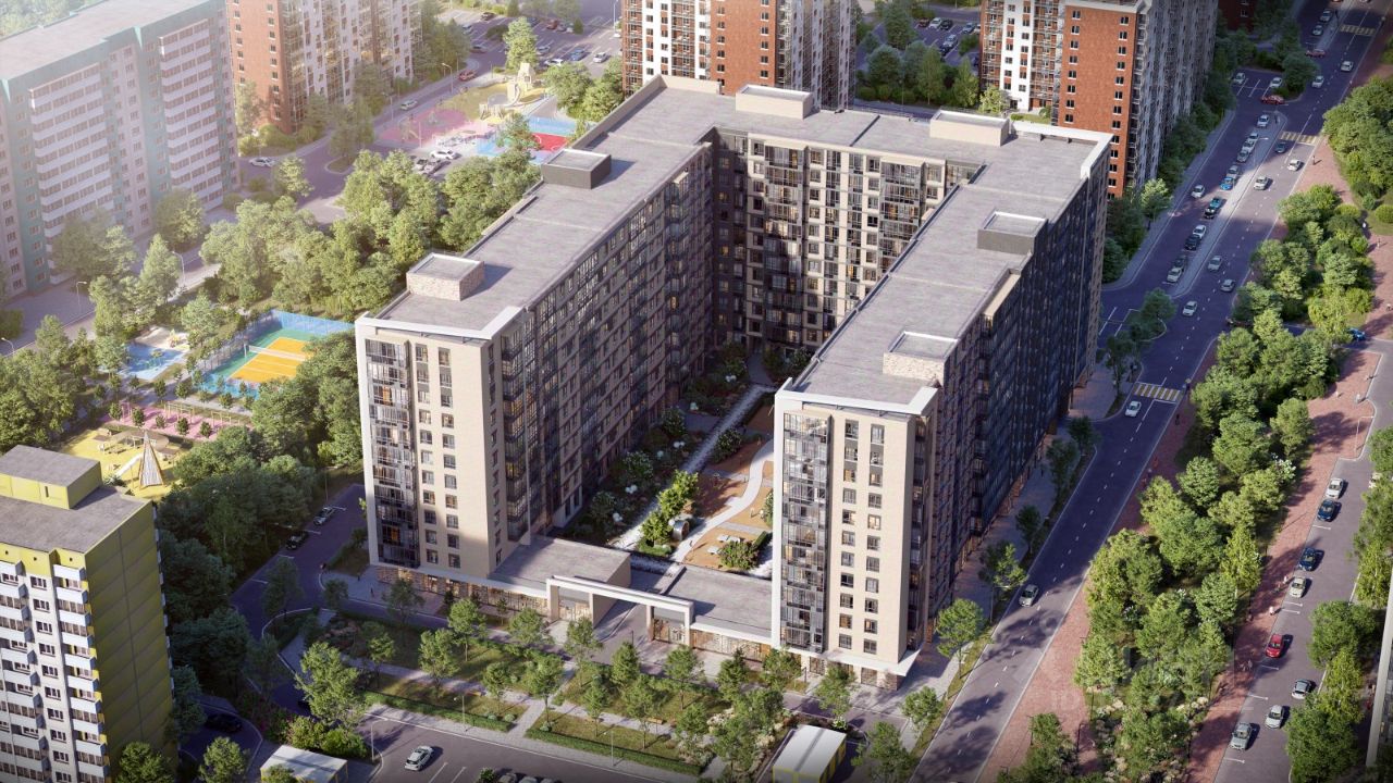 Школа, детский сад и спортивный комплекс строятся непосредственно рядом с домом. Также предусмотрен закрытый двор жилого комплекса, свободный от машин. #2mVfb6