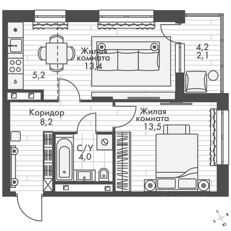| Кол.во комнат | 2 |