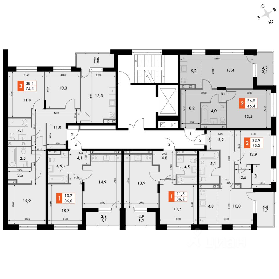 Продаётся 2-к квартира номер 76 общей площадью 46.4 кв.м. на 4-м этаже 6 этажного здания. Отделка Whitebox. Цена с учётом скидки.