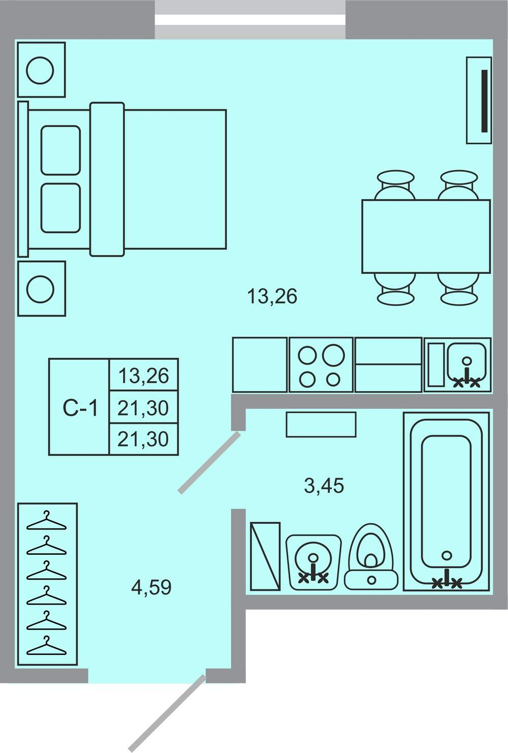 | Площадь общая | 21.3 |
