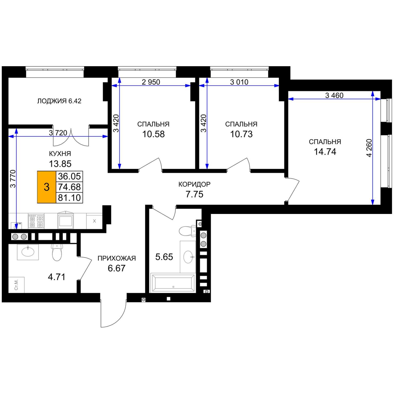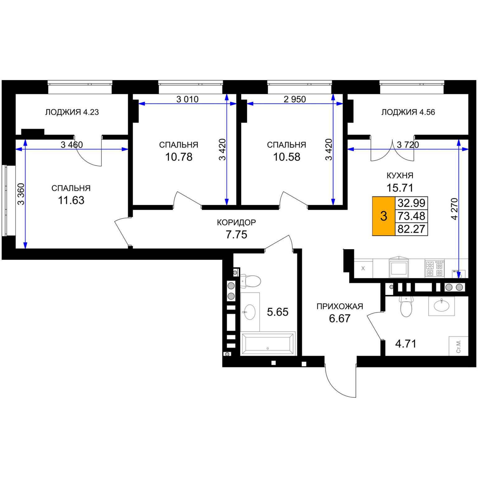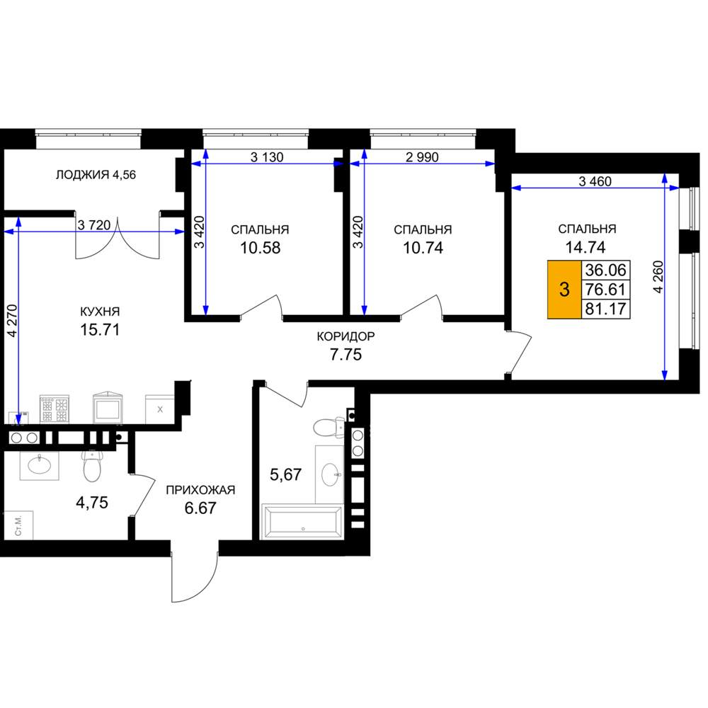 | Категория | 3-комн. |