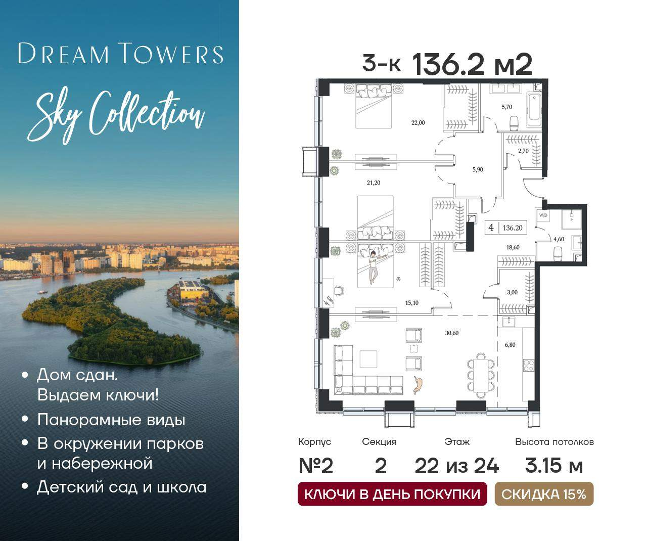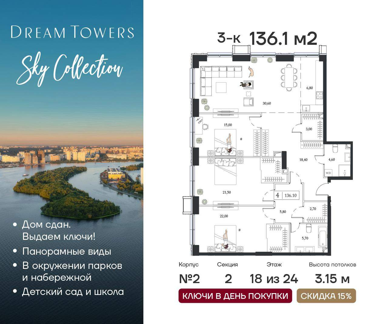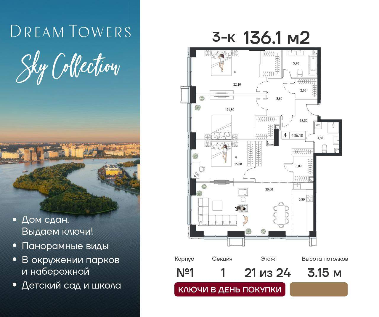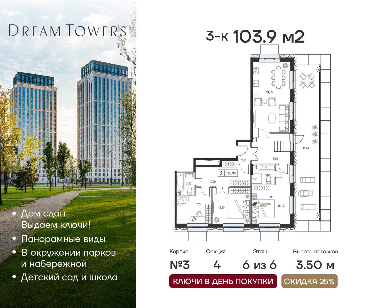 ЖК Dream Towers проект премиум-класса в окружении парков и набережной, с полностью готовой инфраструктурой для комфортной жизни и отдыха.