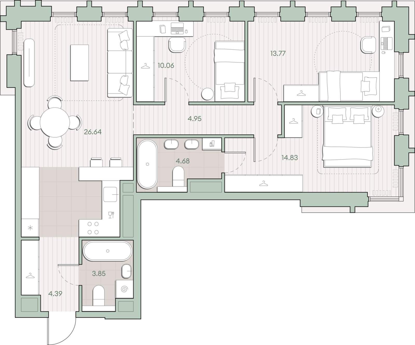 | Площадь кухни | 26.64 |