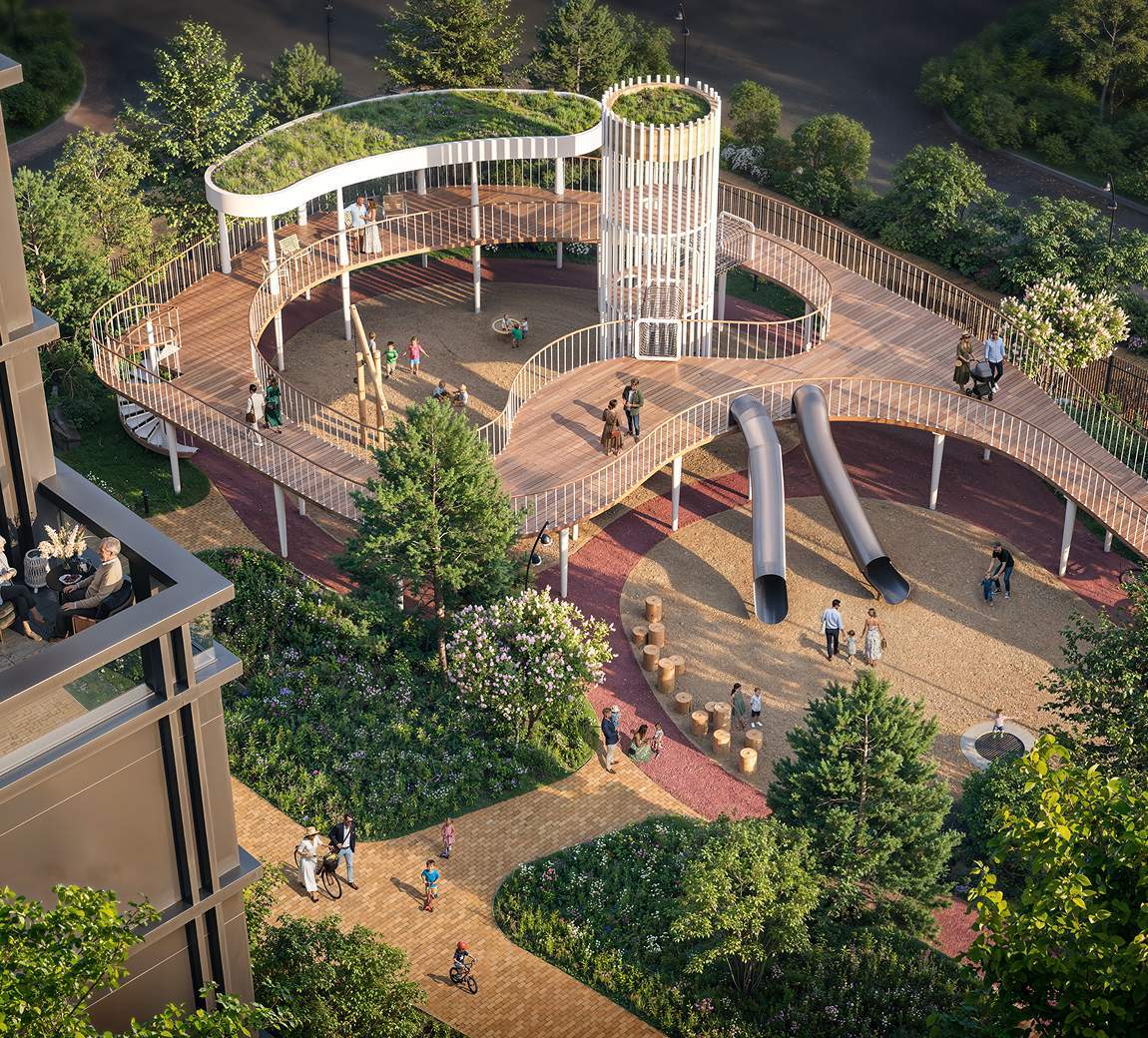 Отдельная многоуровневая парковка. Инфраструктура: детские площадки, спортивные площадки.