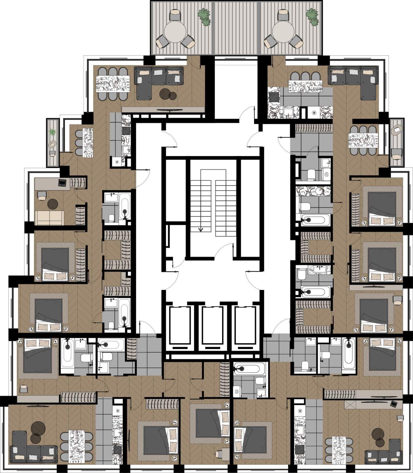 Квартиры с просторными террасами - выход на свежий воздух прямо из дома, гармония природы и городской роскоши.
