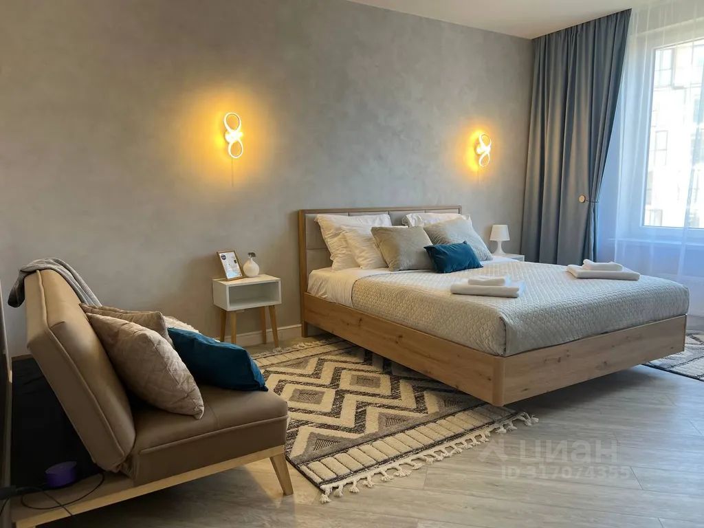 Квартира-студия в новом доме, расположенном в 100 метрах от соснового бора и моря в 50-ти метрах от резиденции Президента РФ. В апартаментах предусмотрено все для комфортного проживания гостей....