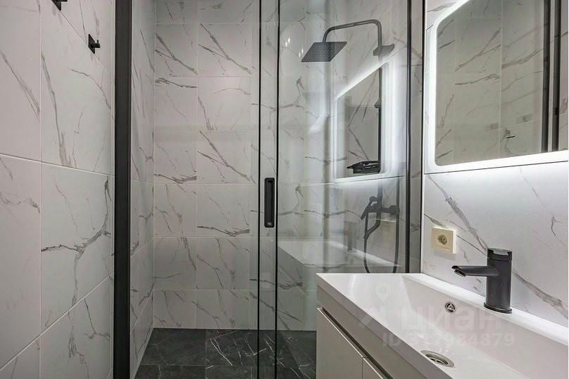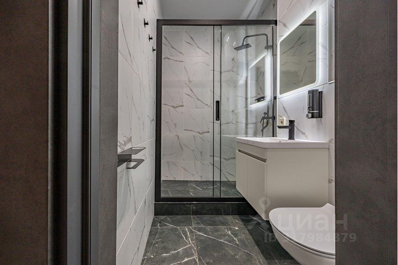— Ванная комната с душевой кабиной, мягкими полотенцами и феном