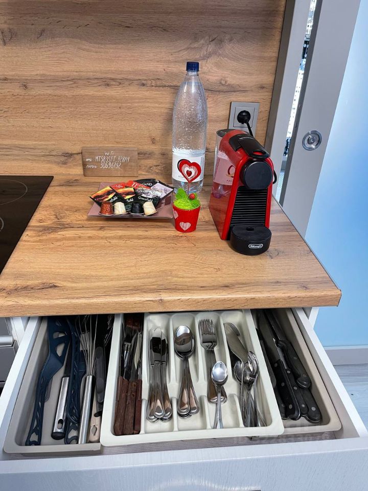 Апартаменты оборудованы всем необходимым для комфортного отдыха. К услугам гостей полноценная кухня оборудованная всей необходимой техникой и посудой. Спальня с двуспальной кроватью, туалетным столиком и шкафом. В гостиной расположен диван легко разбирающийся в комфортную кровать. Полноценный холодильник, стиральная машина, телевизор с ЖК экраном, WiFi. Изюминка апартаментов- собственная сауна, поможет расслабиться после активно проведенного дня.