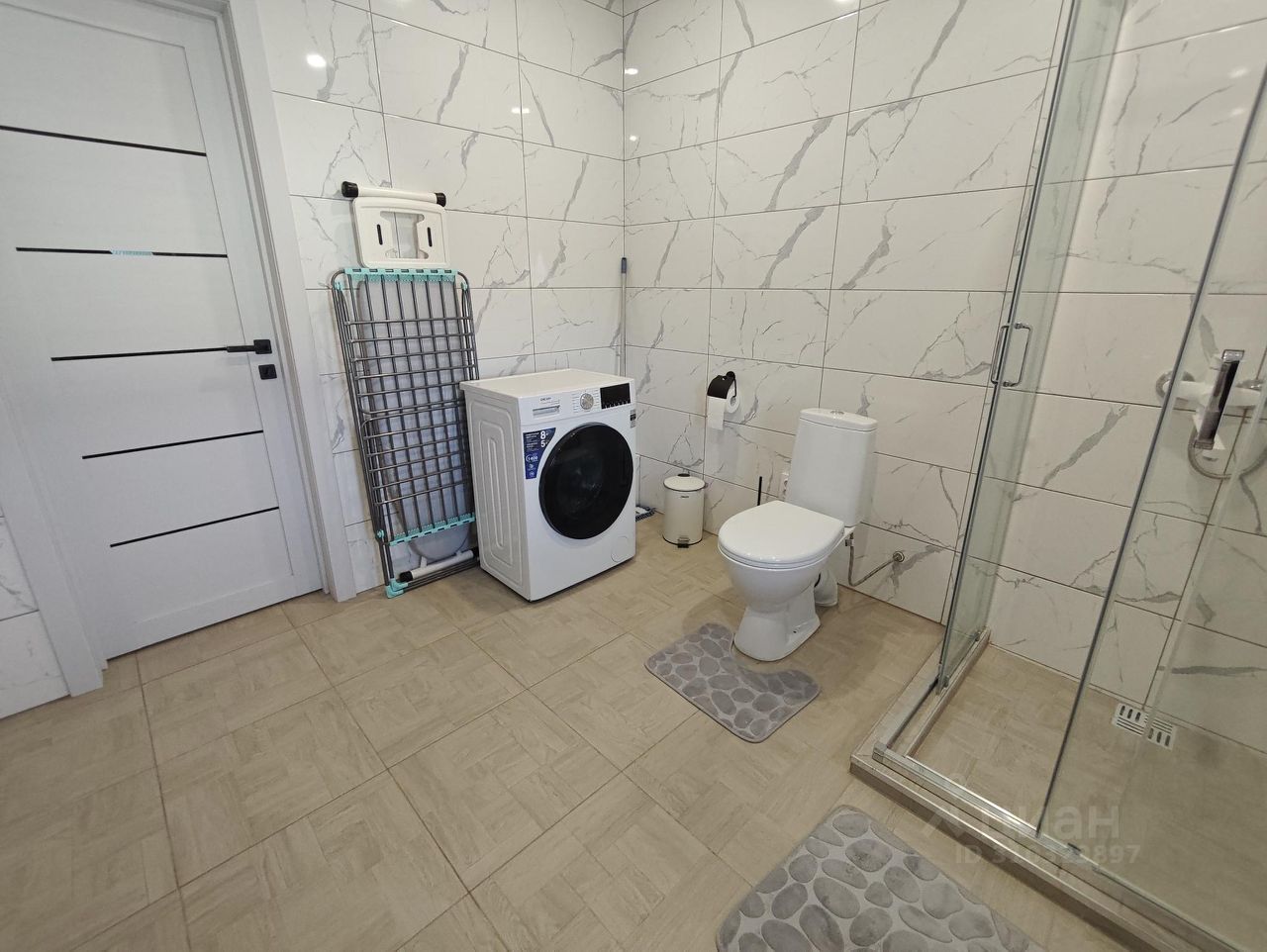 - просторная ванная комната с набором хлопковых полотенец, феном,