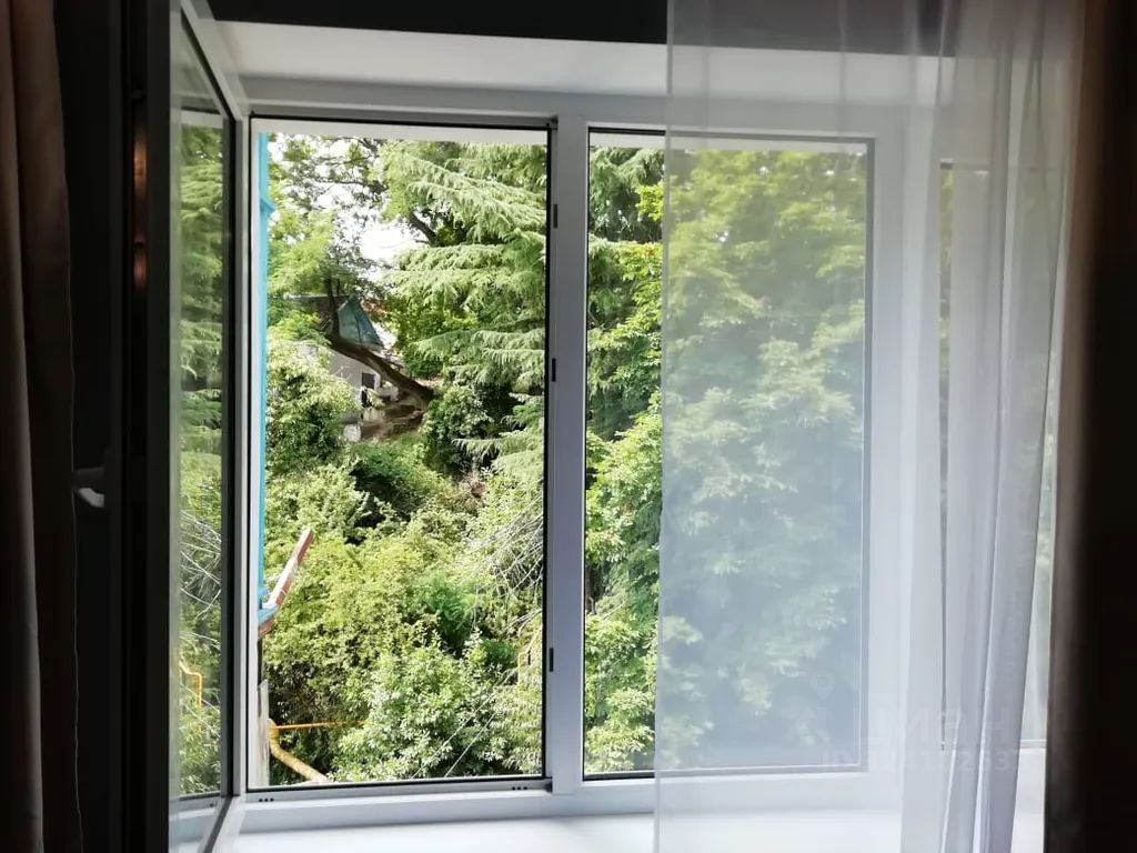 Окна квартиры выходят внутрь двора с прекрасным видом на сосны.