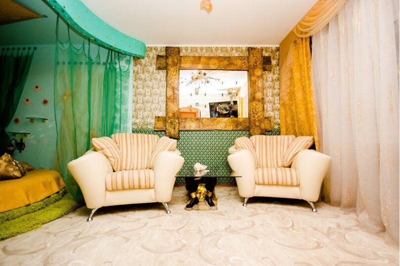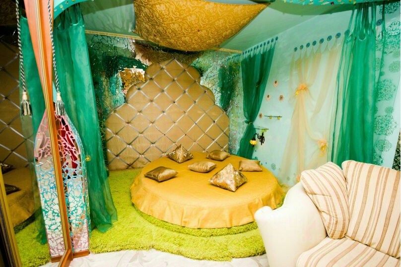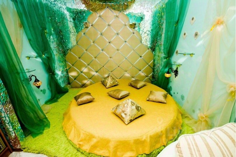 Спальные места: По восточным традициям, сну уделяется особое внимание. Вы сможете насладиться отдыхом на роскошной круглой кровати под балдахином из органзы, застеленной гипоаллергенным бамбуковым постельным бельем.
