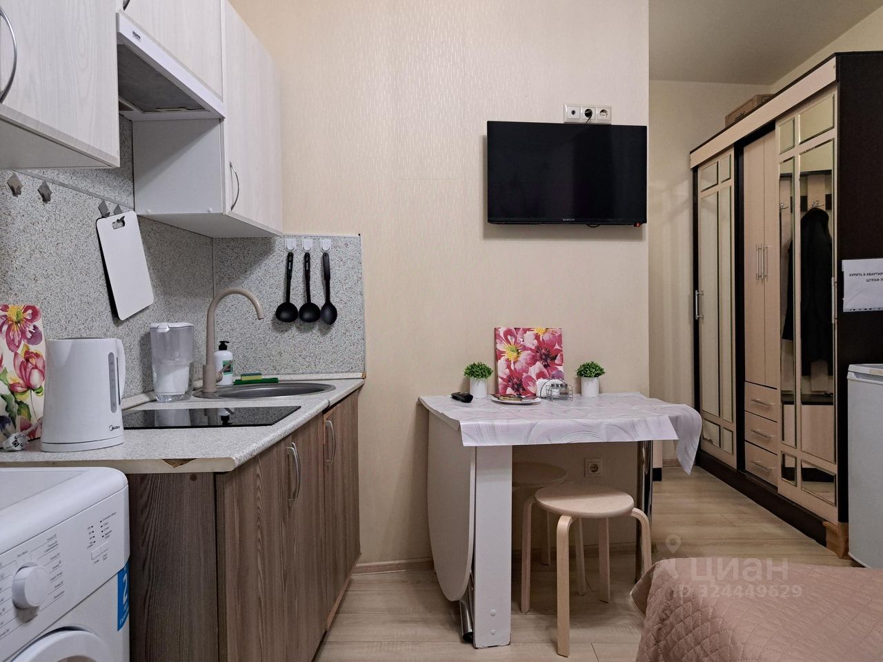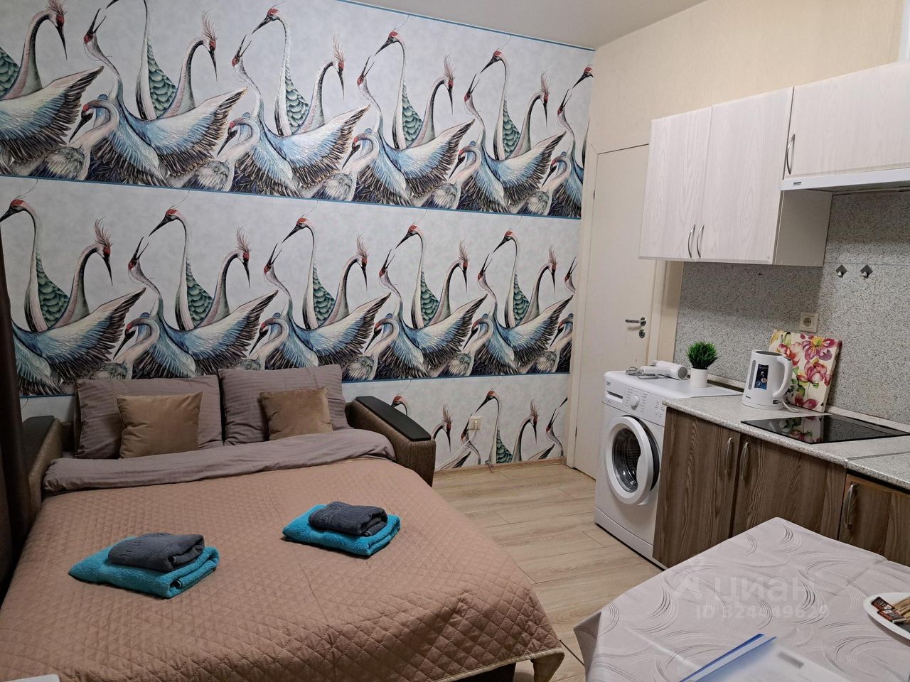 Студия, где каждая деталь работает на комфорт. Здесь всё под рукой: от полноценной кухонной зоны с техникой до стиральной машины и быстрого Wi-Fi. Пространство рассчитано на двоих гостей — идеально для отдыха после прогулок по городу или работы в поездке