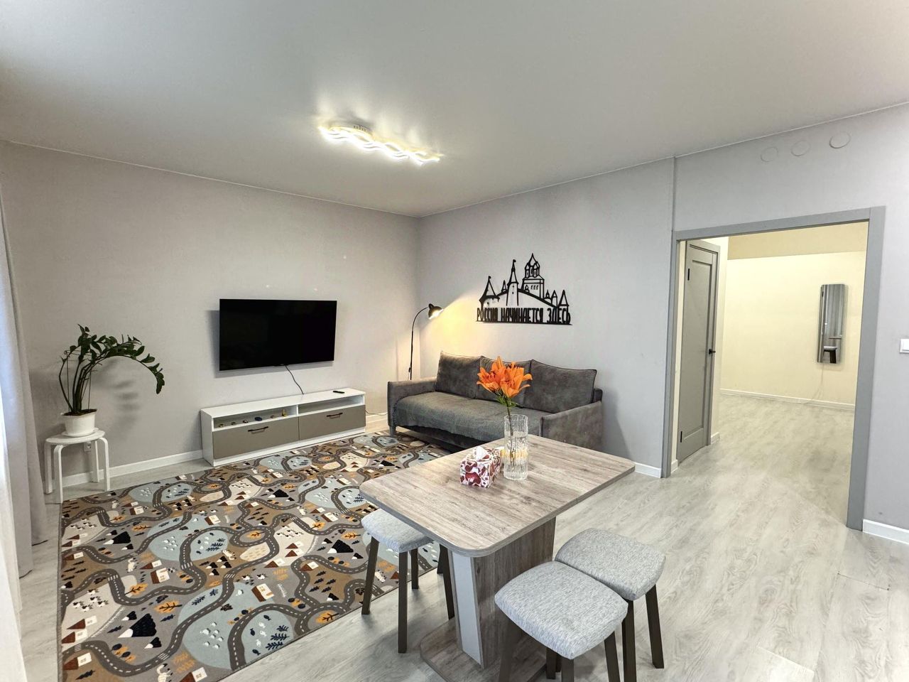 Для гостей нашего города предлагается просторная и уютная студия с отдельной комнатой-спальней — "Россия начинается здесь".
