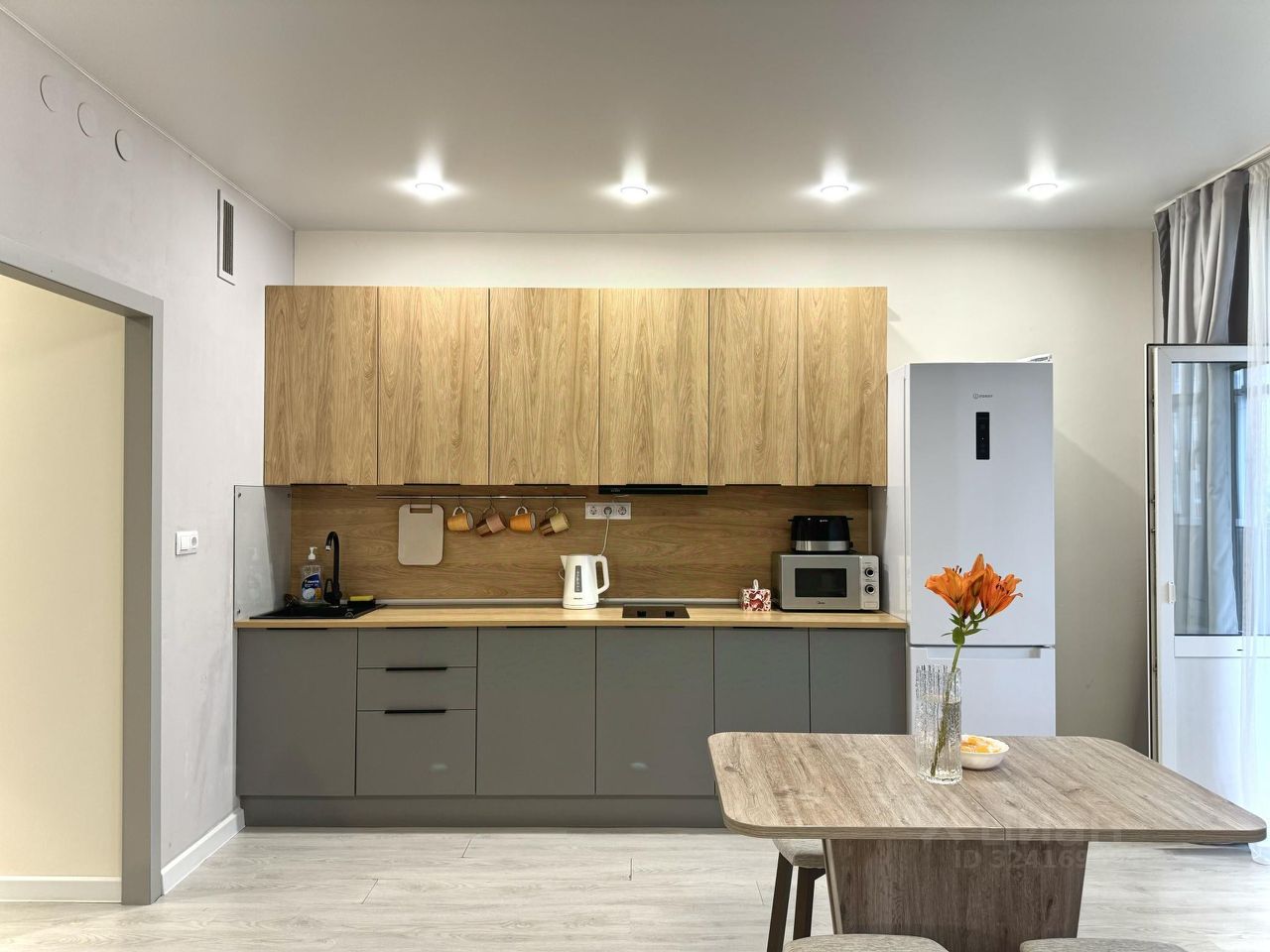 • микроволновка, электрический чайник, варочная поверхность и кухонные принадлежности;