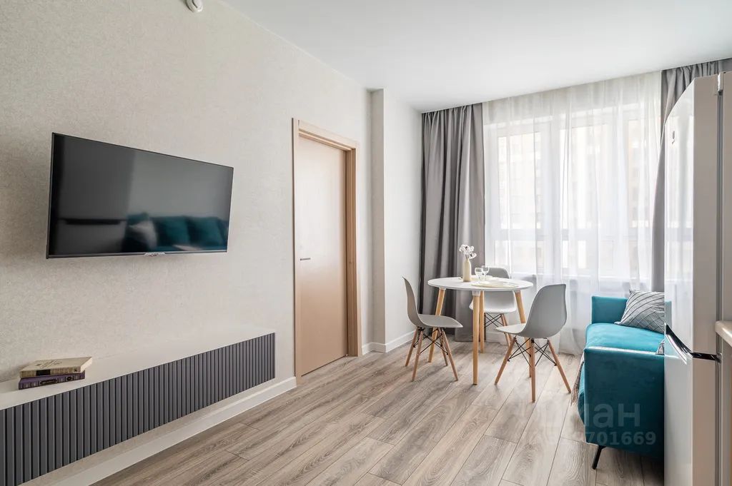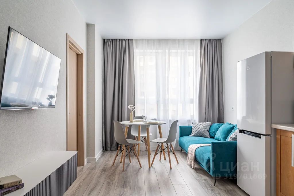 - вся необходимая мебель для проживания: изолированная комната с двуспальной кроватью, места для хранения вещей, комфортный диван и обеденная зона
