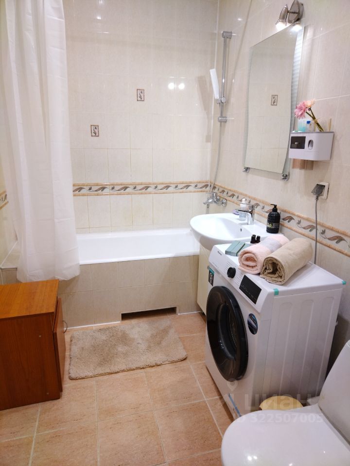 Ванная комната: полотенца, фен, стиральная машина автомат.