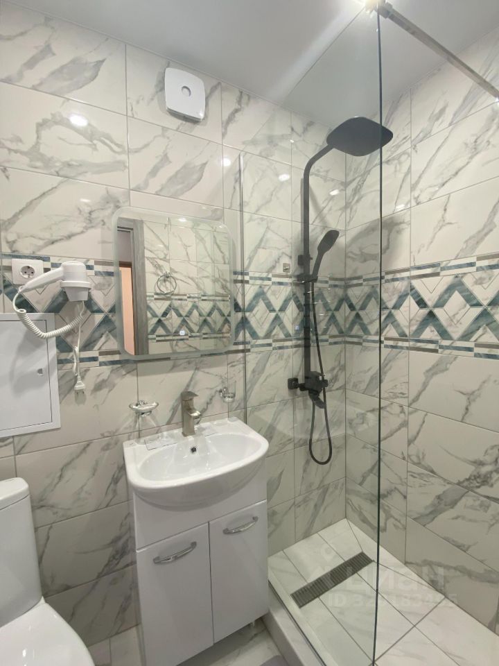 - Ванная комната оборудована тропическим душем с новой сантехникой, полностью покрыта кафельной плиткой. Имеется зеркало с подсветкой, фен, вентилятор для принудительной вытяжки.