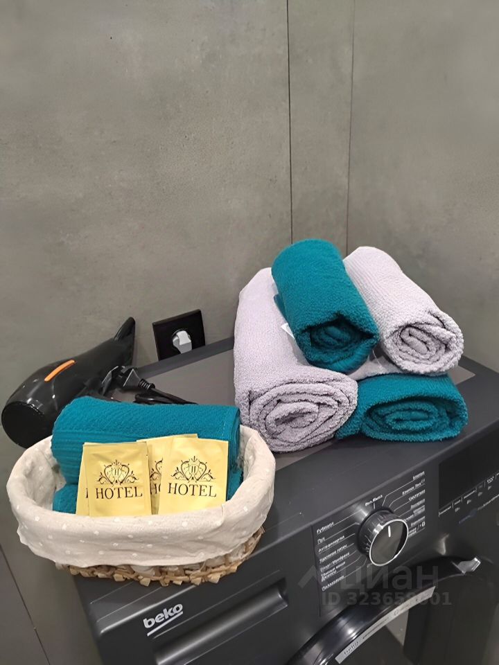 Есть все необходимое для проживания, кабельное ТВ и wi-fi, качественное постельное белье 100% хлопок (Страйп сатин), комплект полотенец, два одеяла, 4 подушки, Посуда в полной комплектации включая фужеры. Утюг + гладильная доска, фен, средство гигиены, моющие средства, кондиционеры в каждой комнате — 3шт. Электрический полотенцесушитель, Большой плазменный телевизор, теплый пол на лоджии и большой подоконник из акрилового камня, кухонная столешница с фартуком из кварцевого агломерата, обеденная зона — спил капового тополя, микроволновка, тостер.