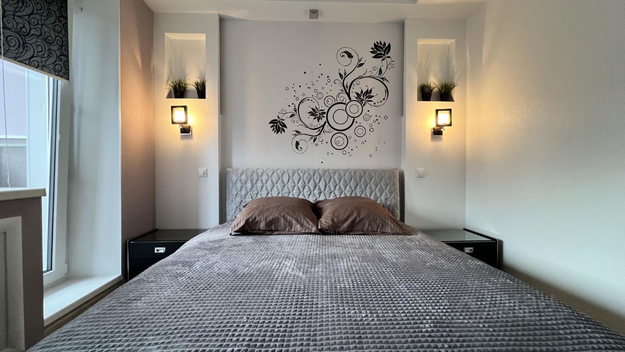 В квартире могут разместиться до 4 человек, спальные места -1 двуспальная кровать + раскладной диван. В апартаментах есть все для комфортной жизни и отдыха: двуспальная кровать с ортопедическим матрасом "Орматек", диван в гостиной раскладной, новое качественное постельное белье и полотенца, просторные шкафы, средства гигиены. Квартира полностью оснащена техникой: стиральная и посудомоечная машины, холодильник с морозильной камерой, микроволновая печь, плита, чайник, фильтр для воды,столовые приборы , фен, утюг, телевизор со смарт ТВ и подписками на кинотеатры, бесплатный интернет с wi-fi.
