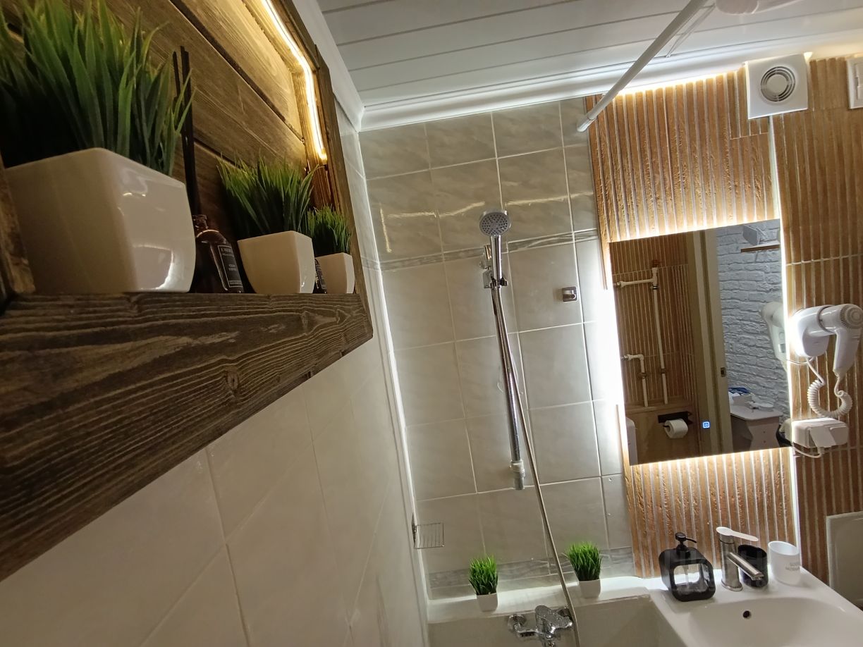 Ванная: Стиральная машина на 5 кг, три режима освещения, новая сантехника, набор полотенец, фен, сиденье с микролифтом, шампунь, мыло, гель для душа, горячая вода круглый год на газу, ночная подсветка с датчиком движения.