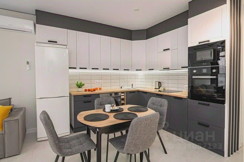- Кухонная зона со всей необходимой мебелью, техникой и посудой