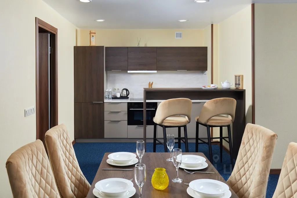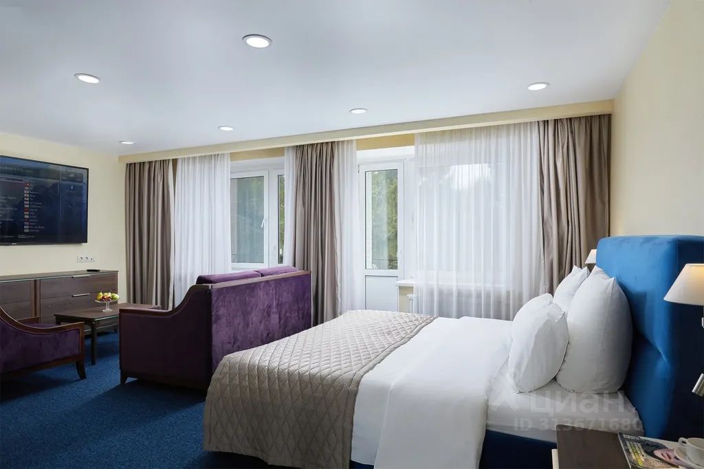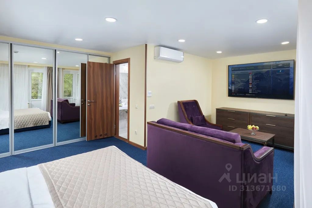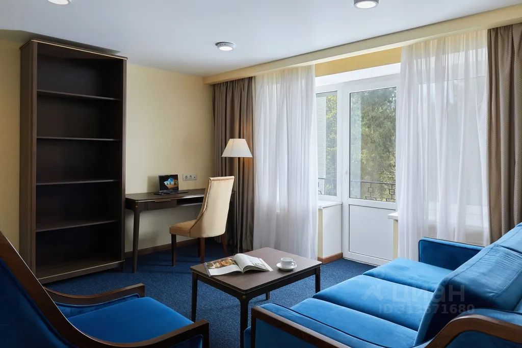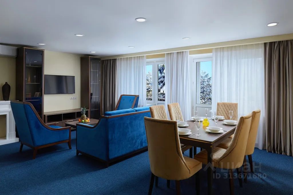 Номер площадью 120 кв.м. Две спальни, кабинет, гостиная/столовая, кухня с посудомоечной машиной, три санузла. В спальнях двуспальные кровати, в кабинете раскладывающийся 1,5-спальный диван. В номере: чайная станция, фен, утюг, стиральная машина, сейф, три телевизора. В ванной комнате туалетные принадлежности, полотенца, тапочки, халаты на каждого гостя. Возможно размещение четырех человек на основных местах, двух человек на диване, возможна дополнительно установка еврораскладушки. Номер расположен в 5 корпусе на 3 этаже, номер с балконом, оснащен кондиционером. Для гостей младше 11 лет предоставляются детский халат, тапочки и косметический набор. Дети до 8 лет на дополнительном месте проживают бесплатно (не более 2 детей в номере), не превышая максимально допустимое количество человек в номере.