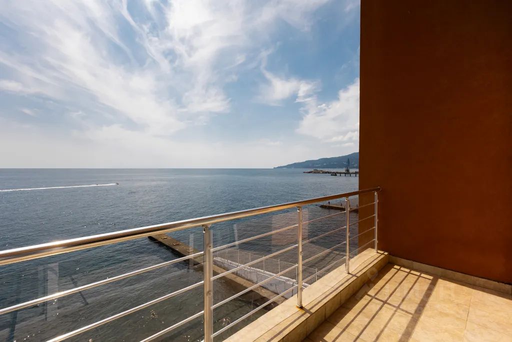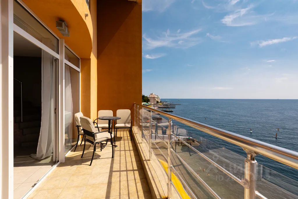 Апартаменты двухэтажные, вход находится на 2 этаже здания. Пляж находится прямо перед окном, спуститься можно на лифте. Есть "свой" лежак.