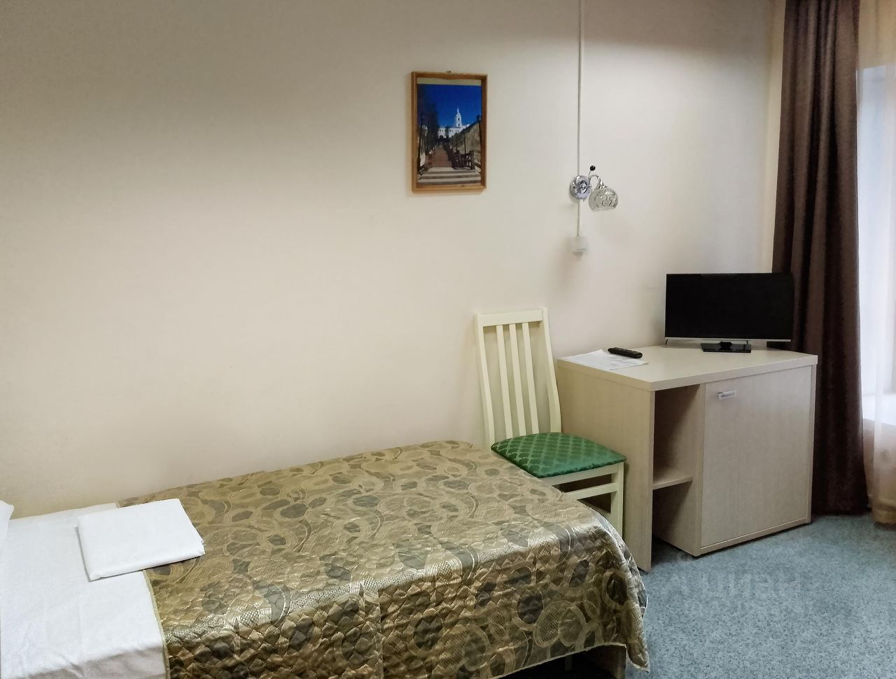 Номер с одной односпальной кроватью. К услугам гостей телевидение, стол, шкаф, прикроватная тумба, бесплатный интернет по Wi-Fi. Номер не оборудован санузлом. Гости могут воспользоваться санузлом и душем на этаже.