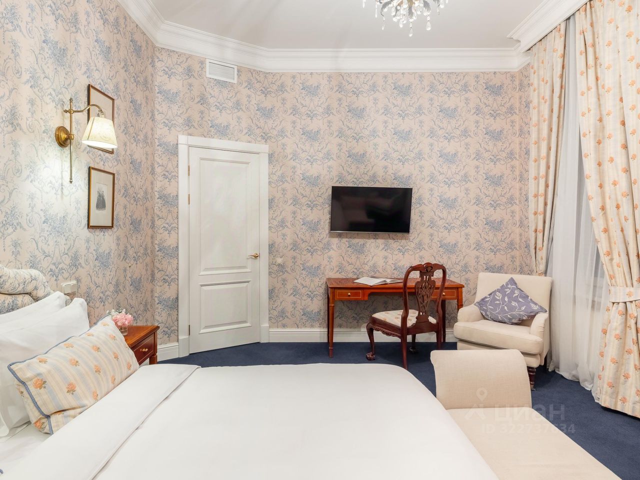 Роскошно оформленный двухкомнатный сьют площадью более 60 кв. м. расположен на втором Дачи Шелепина, из номера открывается вид на Финский Залив. В дизайне интерьера преобладает голубое цветовое решение, и номер шикарно обставлен предметами антиквариата. В номере большая двуспальная кровать, мягкая мебель, письменный стол, журнальный столик, встроенный гардероб с отделениями для багажа, телефон, WiFi, ТВ, сейф, комплементарный мини бар с ассортиментом безалкогольных напитков и легких закусок.