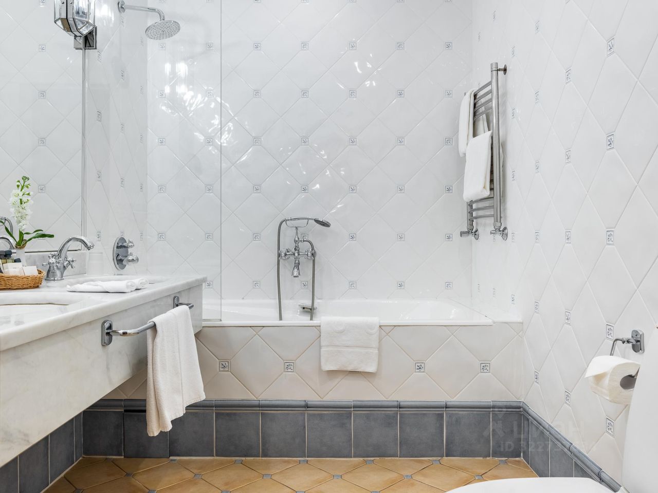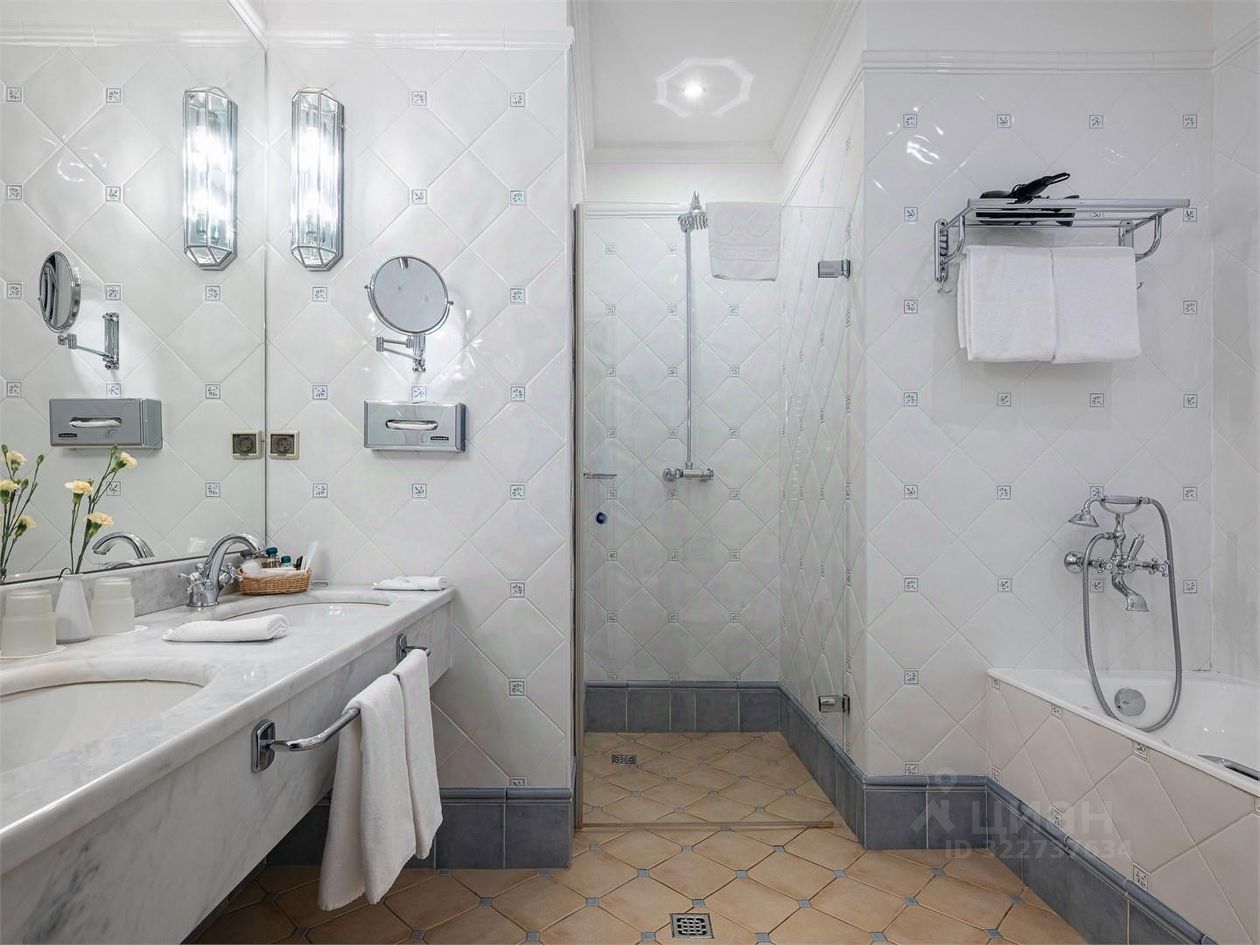 В ванной комнате: ванна, душевая кабина, фен, полы с подогревом, набор хлопковых полотенец, халаты, тапочки и европейские косметические принадлежности. Финская сауна. Терасса видом на залив.