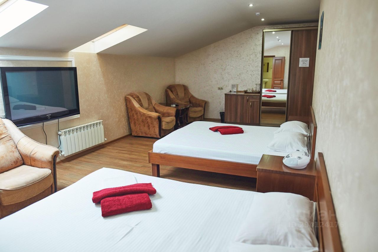 В распоряжении гостей четырехместный номер с двумя двуспальными кроватями. В числе удобств: телевизор со спутниковым ТВ, холодильник, сейф, сплит система, вай фай, набор полотенец для каждого гостя, одноразовые тапочки, посуда.