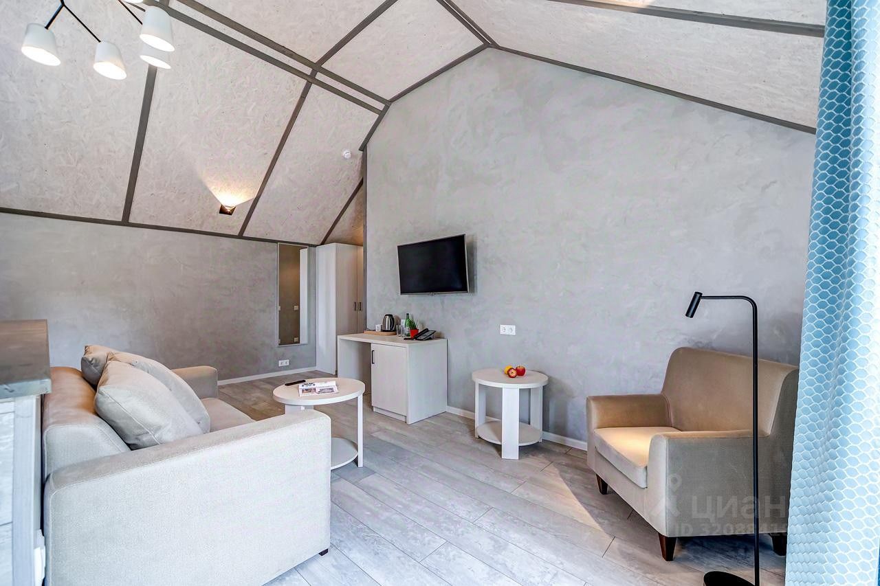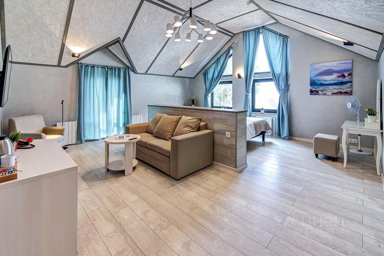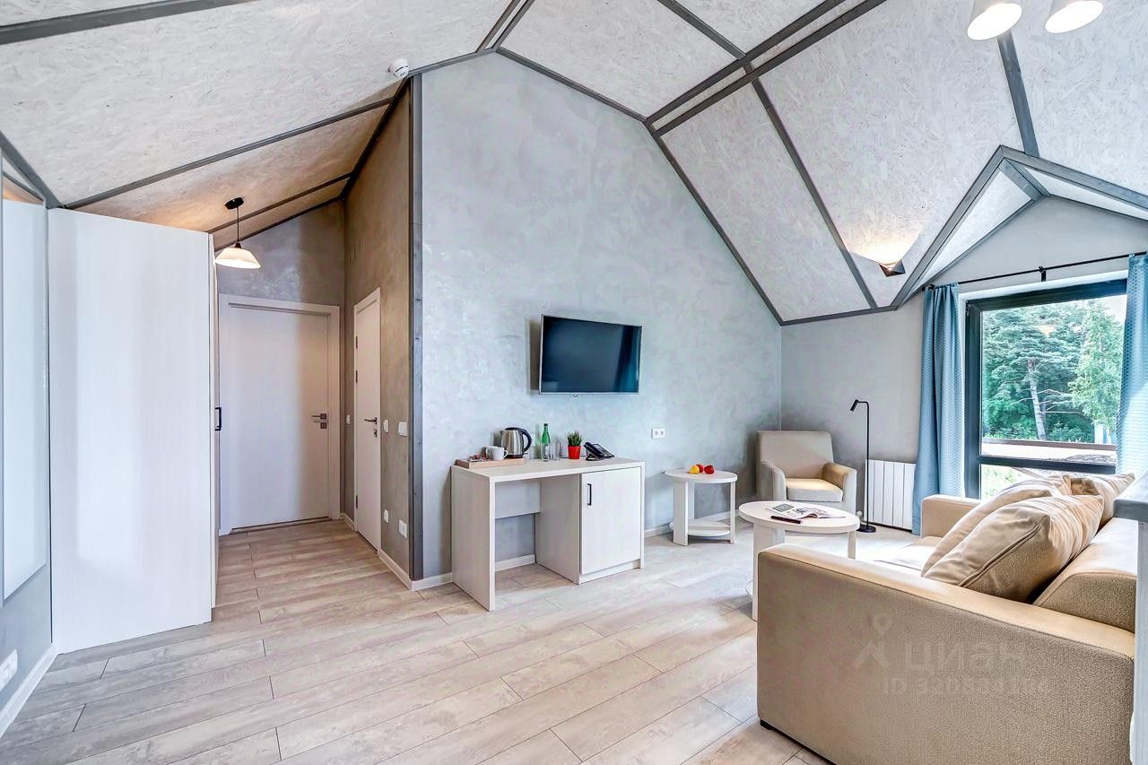 Просторный номер джуниор сьют в дизайне скандинавской классики, с прекрасным видом на территорию базы отдыха и залив.