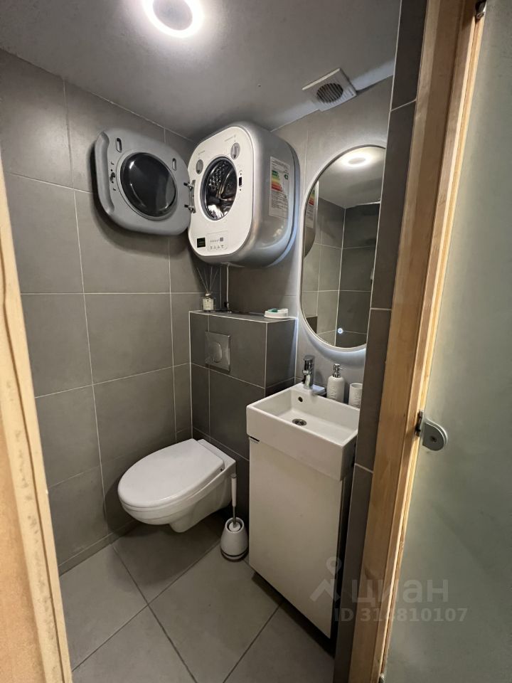 Совмещенный санузел с тропическим душем, стиральная машинка. Фен.
