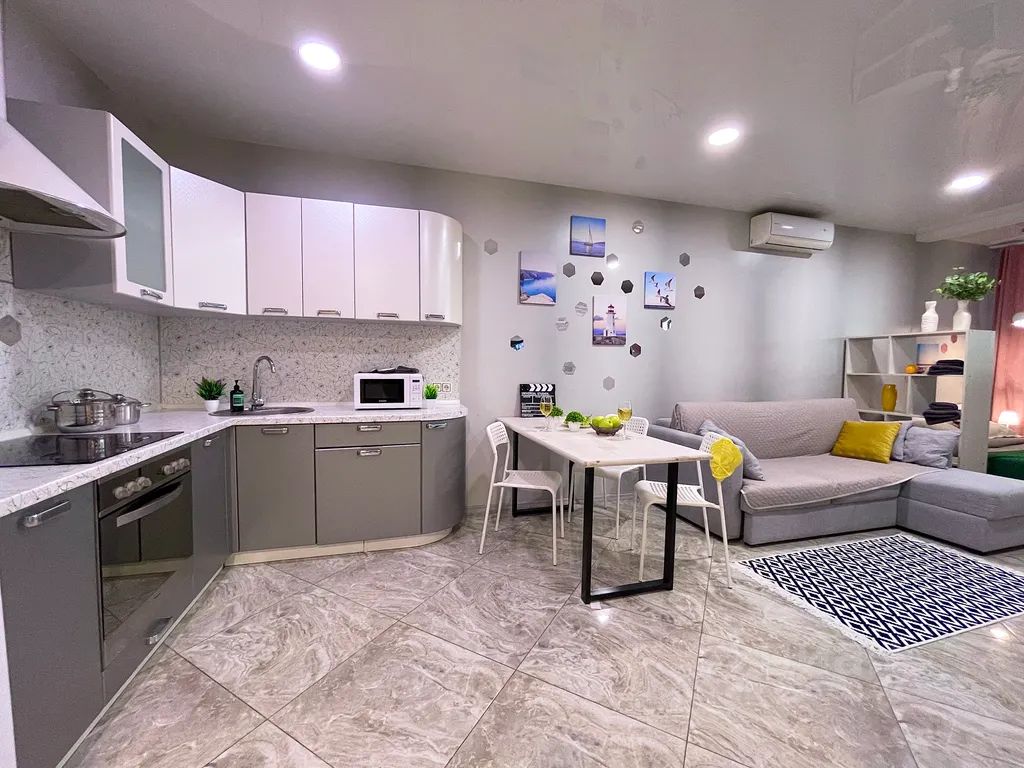 Из окон квартиры открывается вид на зеленую зону, а продуманный интерьер и комфортная планировка создают уютную атмосферу для отдыха, работы или командировки.