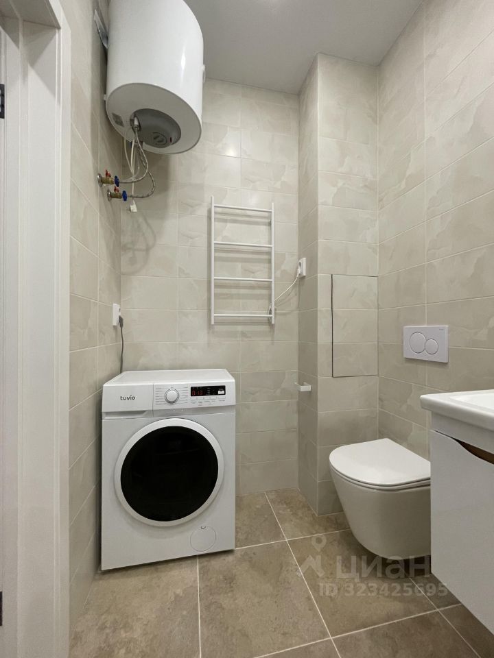 Просторная ванная комната, стиральная машина, фен, утюг