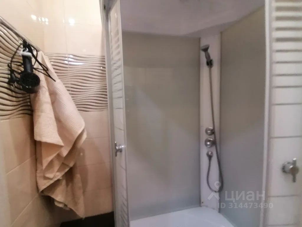 В санузле: душевая кабина, фен, стиральная машина, средства гигиены (шампунь, мыло, гель для душа, стиральный порошок).