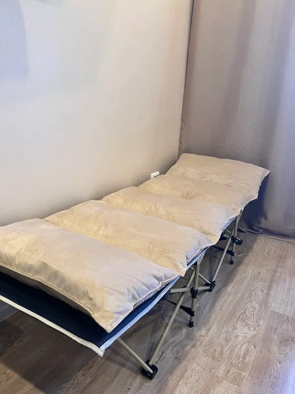 - Есть раскладушка с мягким матрасом 190*70. Есть на фото.