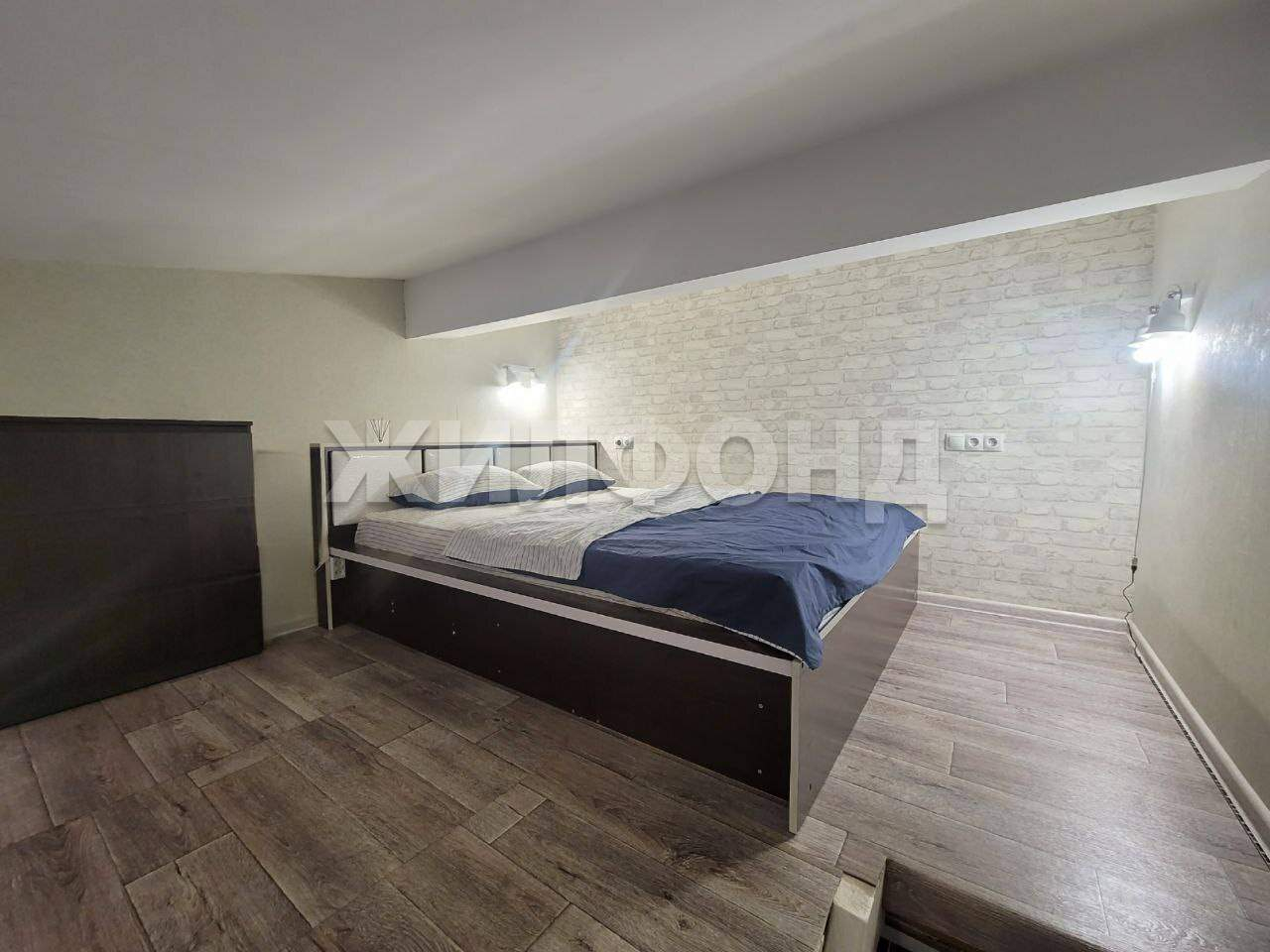 Два уровня зонирование снизу кухня-гостиная, сверху спальня.