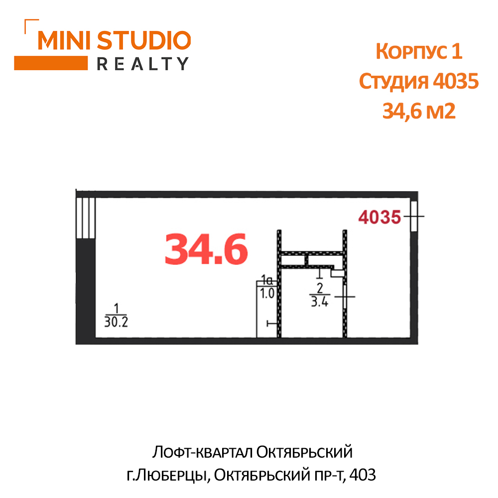 | Площадь общая | 34.6 |